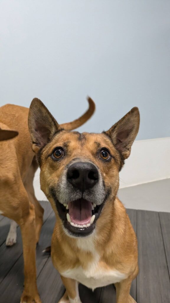 Donald is a very happy, loving and goofy young pup. This playful pup is the perfect mix of energy and affection. He loves to run, romp, and chase around with their doggy friends, making him an ideal buddy for an active household or a home with another playful dog. After a fun-filled day, he’s happiest curled up beside you for some quality snuggle time. With a heart full of love and paws made for adventure, Don is ready to bring joy, laughter, and cuddles into their forever home.